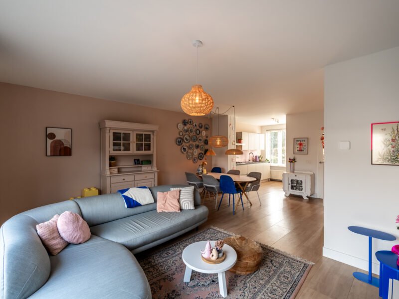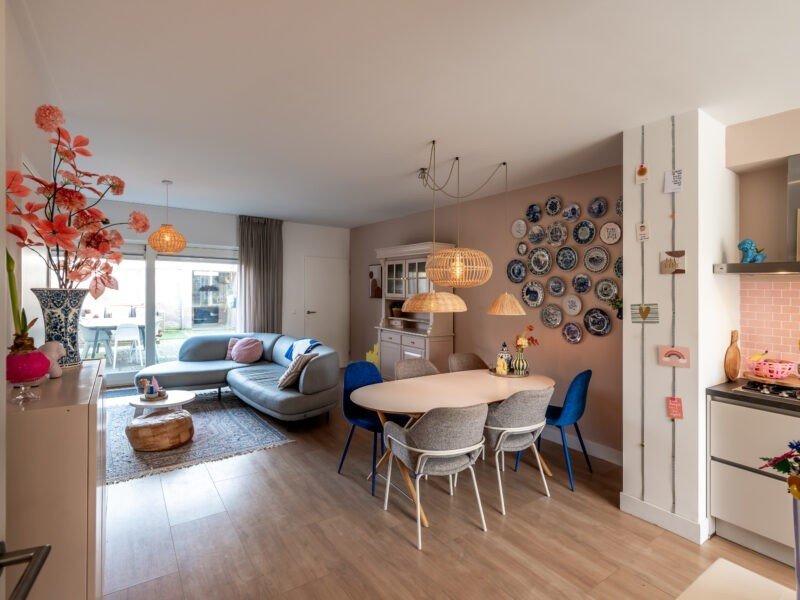 De living is prettig van formaat en geniet van een fijne lichtinval en een mooie verbinding met buiten dankzij de brede SCHUIFPUI naar de tuin. Er is volop ruimte voor een comfortabele zithoek, waar ontspannen en samen zijn centraal staan.
