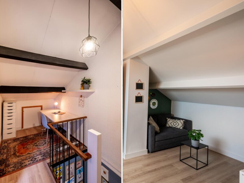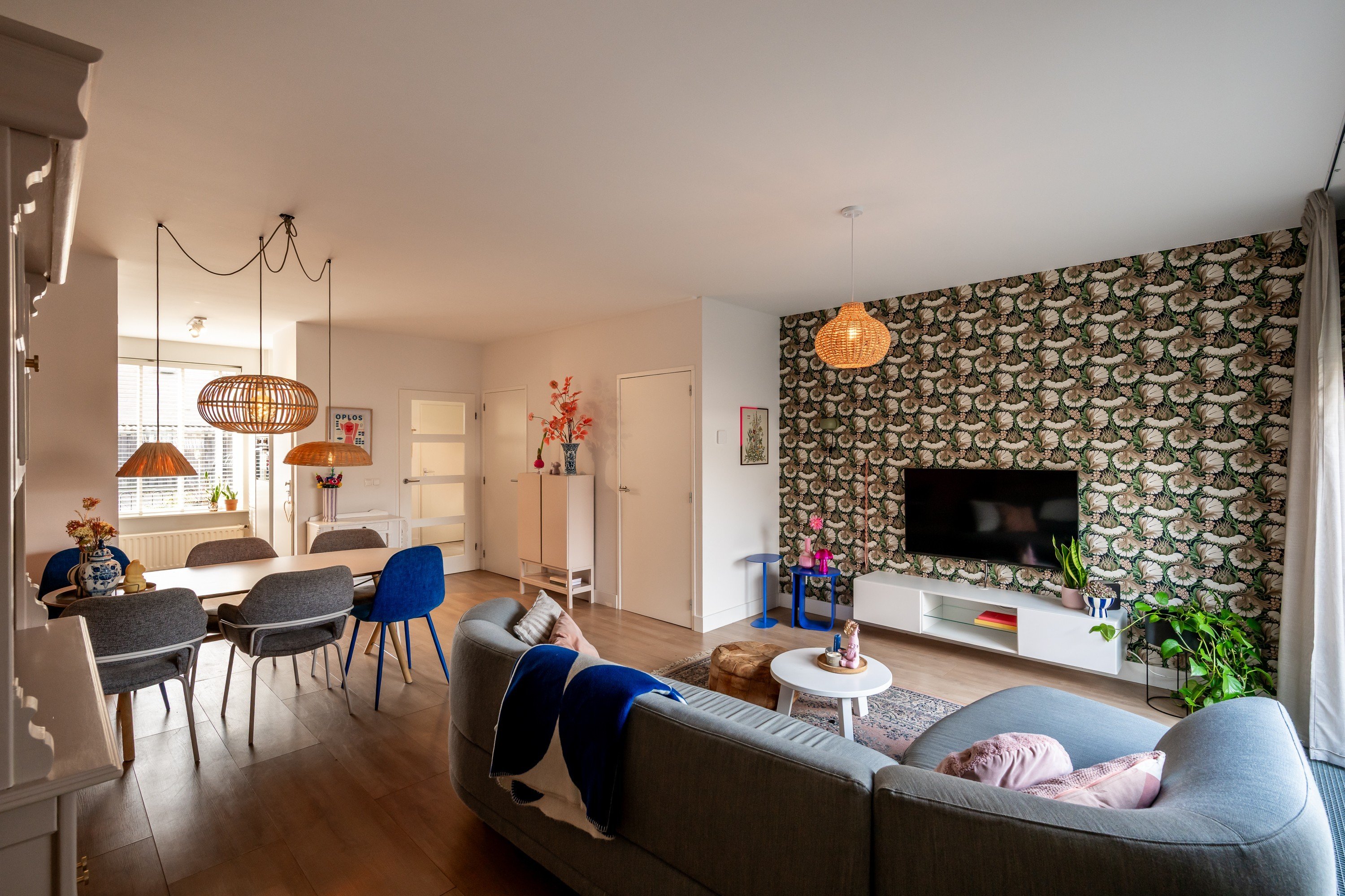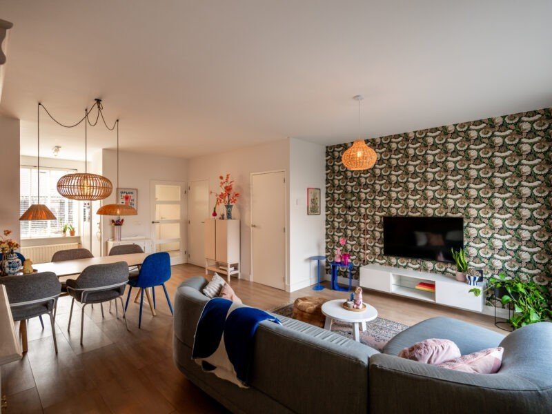 Waar voorheen een open trap aanwezig was, is deze nu netjes dichtgemaakt. Dit geeft de woonkamer een rustige en verzorgde uitstraling.
