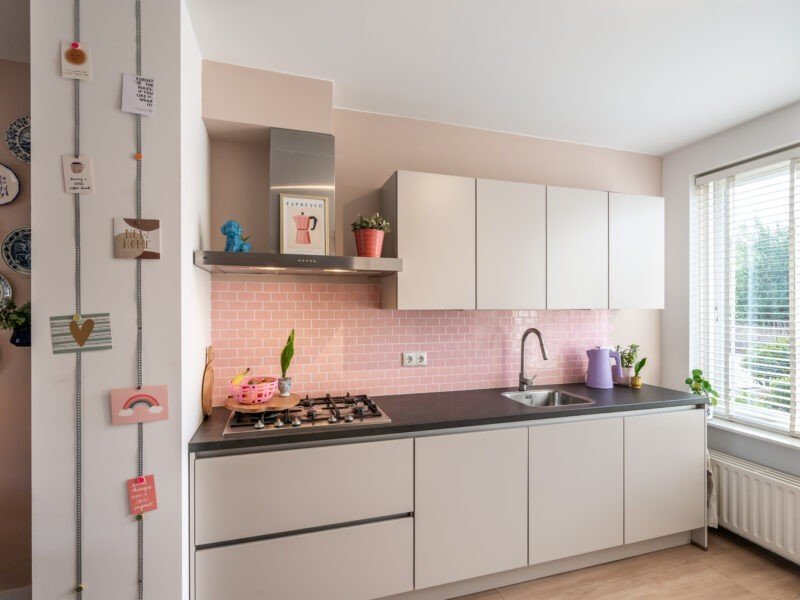 De OPEN keuken bevindt zich aan de voorzijde van de woning en is in 2020 vernieuwd. De keuken is uitgevoerd in een lichte, moderne kleurstelling en biedt prettig zicht naar buiten.