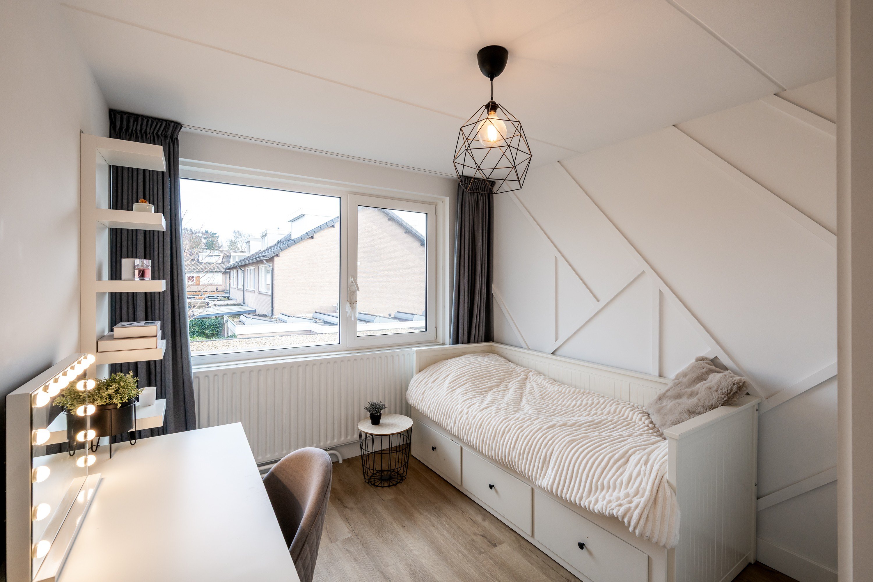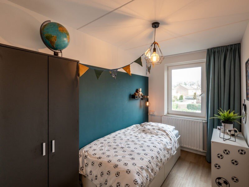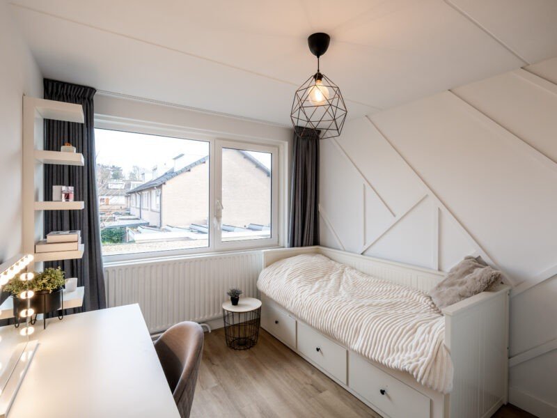 Aan de achterzijde bevinden zich de tweede en derde slaapkamer. De TWEEDE slaapkamer is van een prettig formaat en uitstekend geschikt als kinder- of logeerkamer. De DERDE slaapkamer is compacter en ideaal als kinderkamer, werkplek aan huis, hobbyruimte of walk-in closet. Alle kamers profiteren van daglicht, een verzorgde afwerking en zijn voorzien van ROLLUIKEN, wat bijdraagt aan extra comfort en privacy.