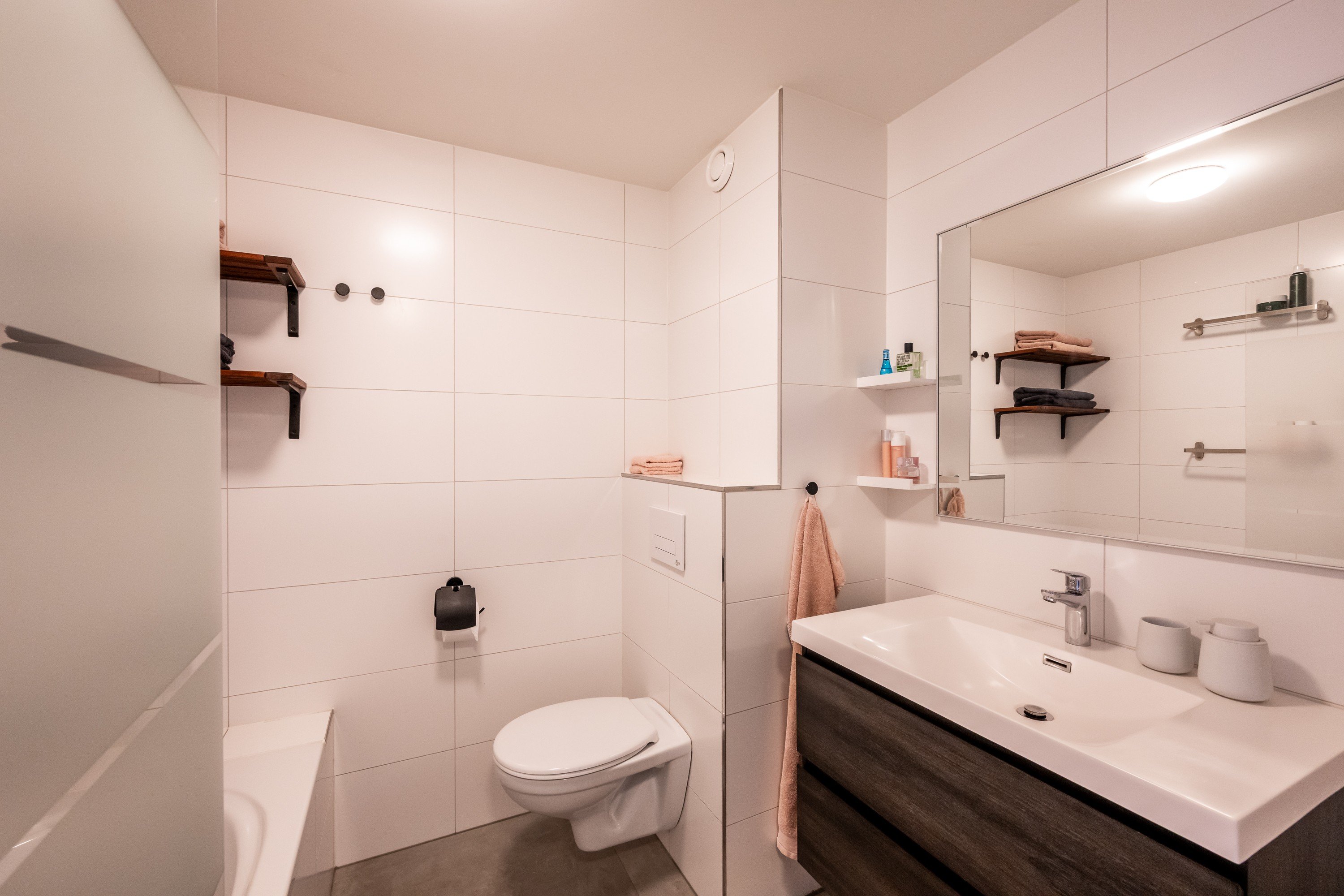 De badkamer is inpandig gelegen op de eerste verdieping en is in 2020 vernieuwd.