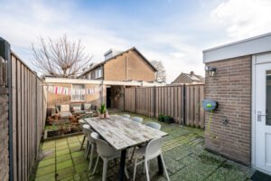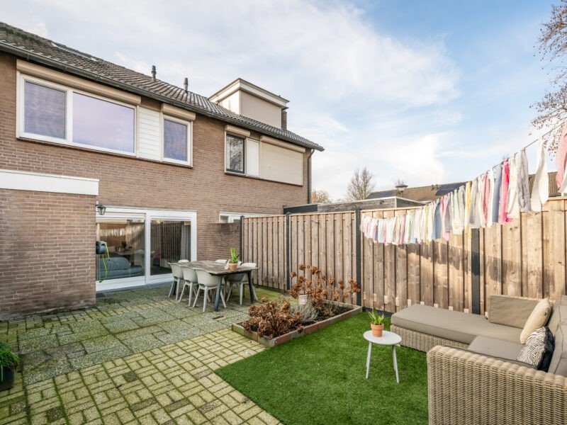 De achtertuin is ONDERHOUDSVRIENDELIJK aangelegd en biedt volop ruimte voor meerdere zitplekken. Of u nu wilt loungen in de zon of gezellig buiten wilt eten met familie en vrienden, hier kan het allemaal.