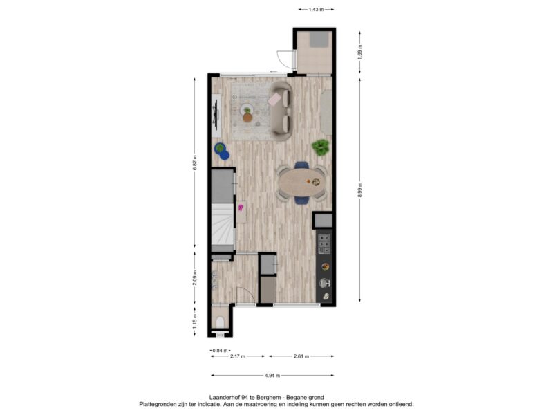 Via de entree komt u binnen in de hal met de meterkast, garderobe en toiletruimte. Vanuit hier lopen we door naar de LIVING, gelegen aan de achterzijde van de woning.