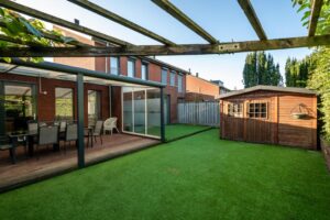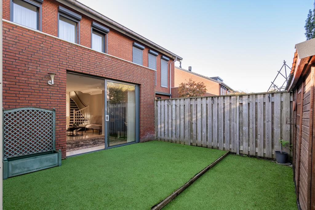 De tuin is ONDERHOUDSVRIENDELIJK aangelegd en aan de achterzijde is een vrijstaand houten TUINBERGING geplaatst.