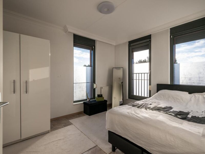 De MASTER bedroom bevindt zich aan de achterzijde van de woning. Het is een zeer royale ruimte die zich uitstrekt over de gehele breedte van de verdieping. De typerende grote raampartijen zorgen ook hier voor optimale lichtinval.