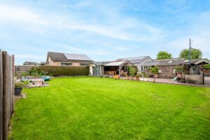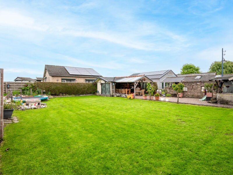 De woonboerderij is gunstig gesitueerd aan de zijkant van het perceel en wordt omgeven door een fijne voortuin, een ruime oprit en een beschutte achtertuin. Of u nu houdt van zon, schaduw of een combinatie van beide, hier vindt u altijd een aangenaam plekje om van het buitenleven te genieten.