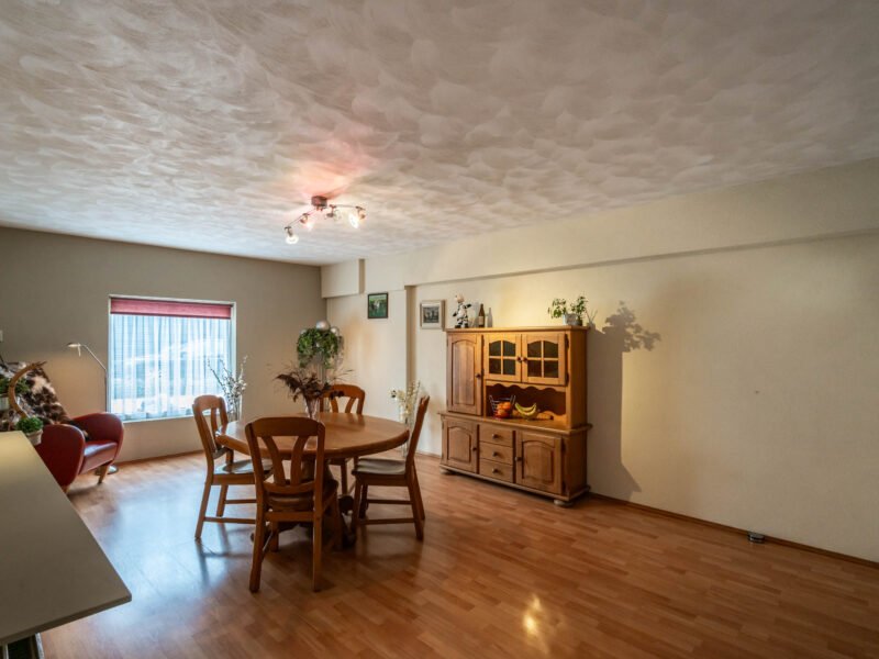 De woonkamer is TUINGERICHT en profiteert volop van natuurlijk daglicht dankzij de grote raampartijen. Via de openslaande deuren staat u zo in de tuin, een heerlijk verlengstuk van uw leefruimte. De living is een fijne ruimte waar wonen en eten sfeervol worden gecombineerd. Een voormalige slaapkamer is bij de woonkamer getrokken voor extra leefruimte.