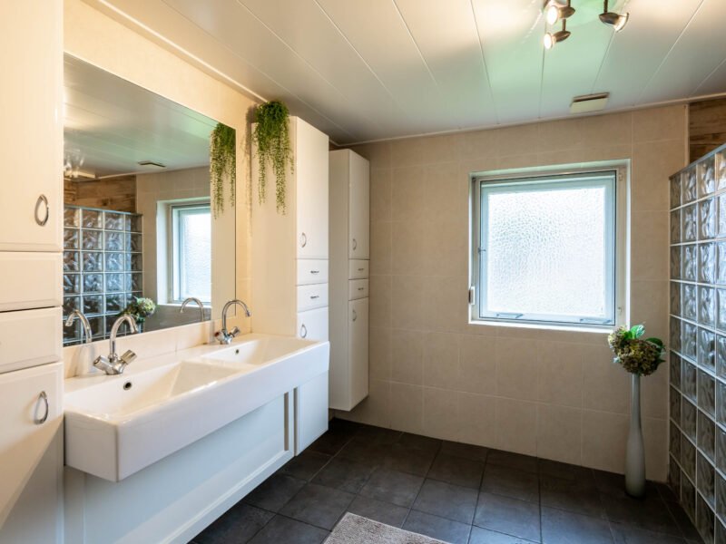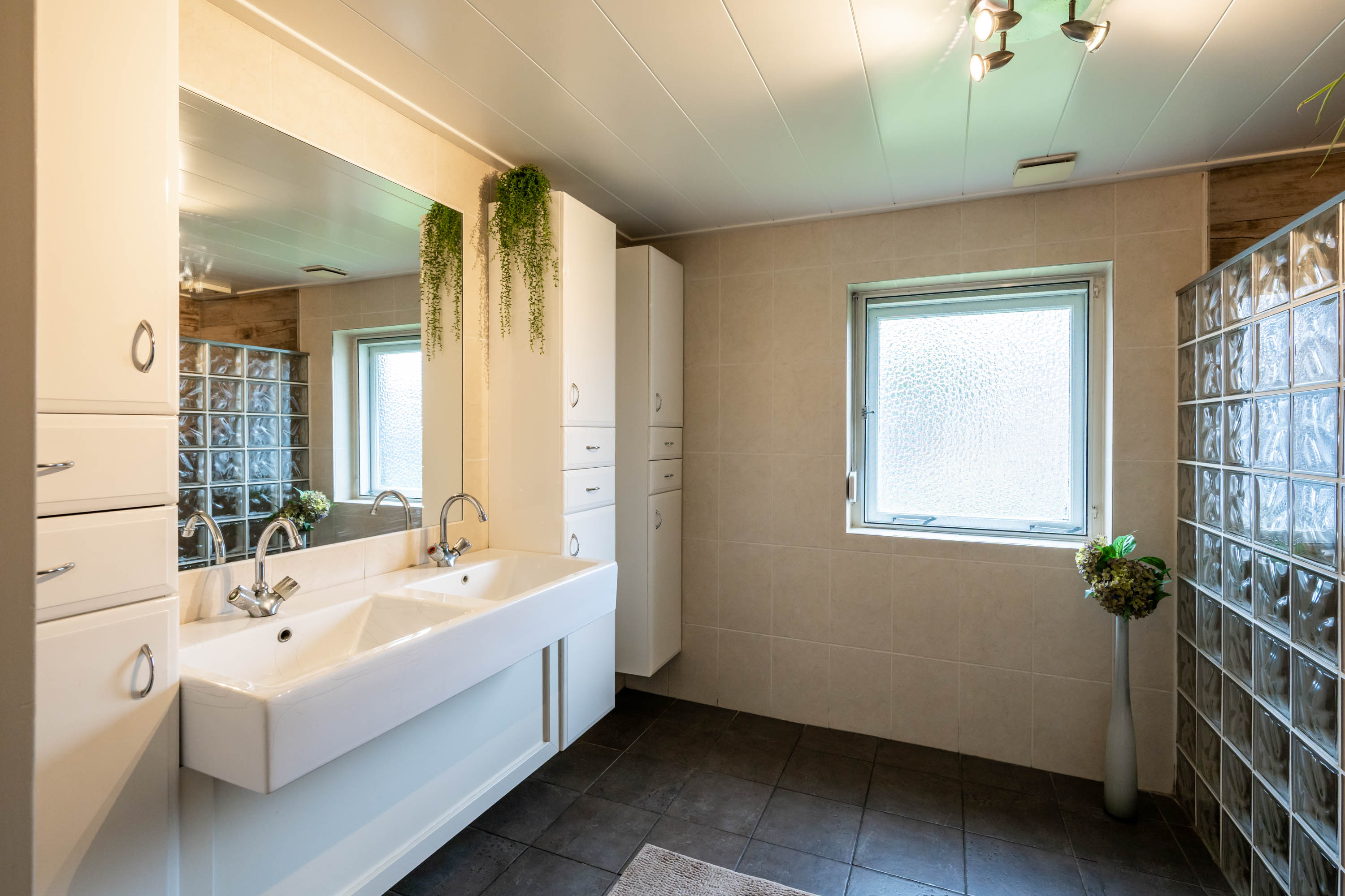 De badkamer bevindt zich eveneens op de begane grond en is bereikbaar vanuit de centrale hal.