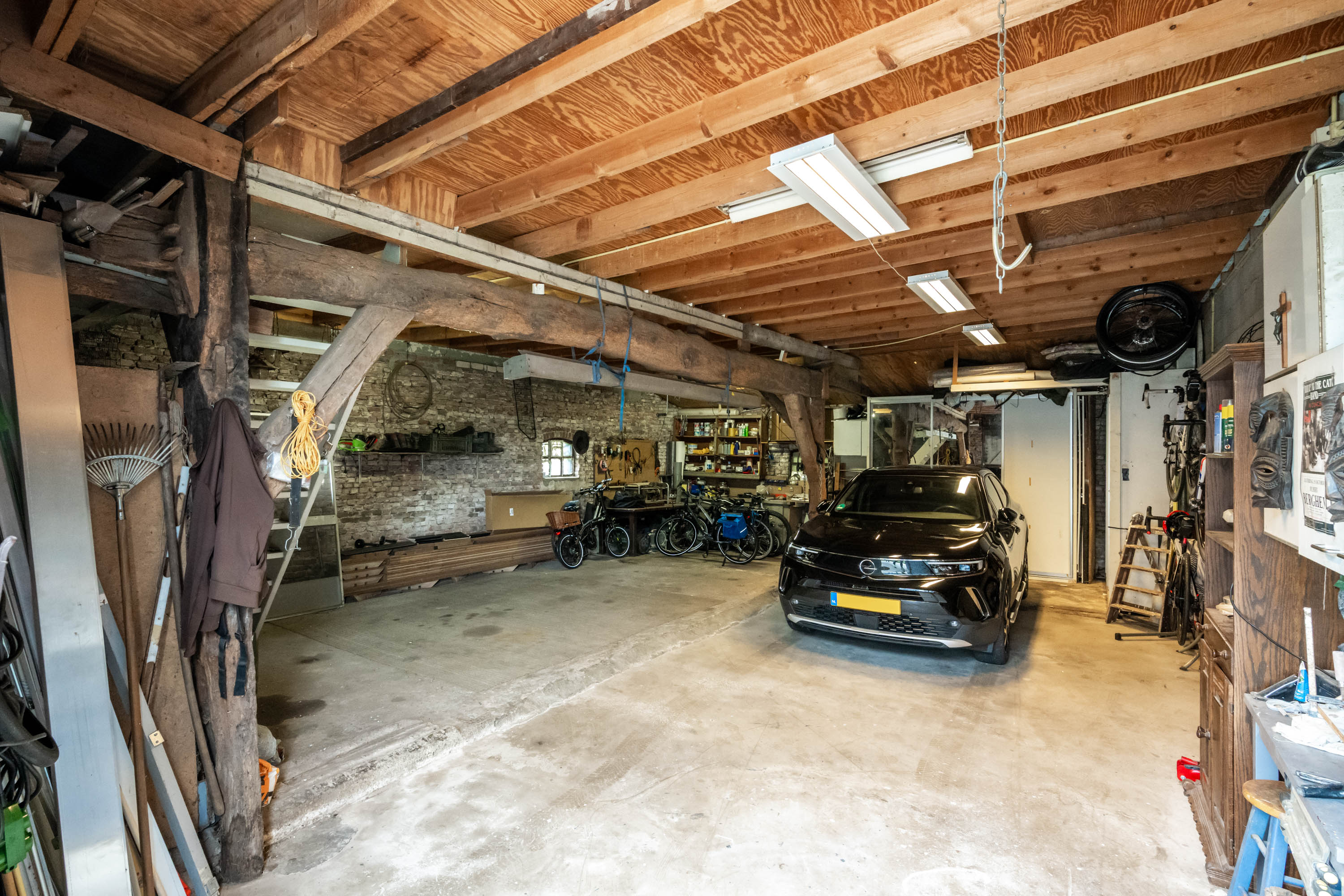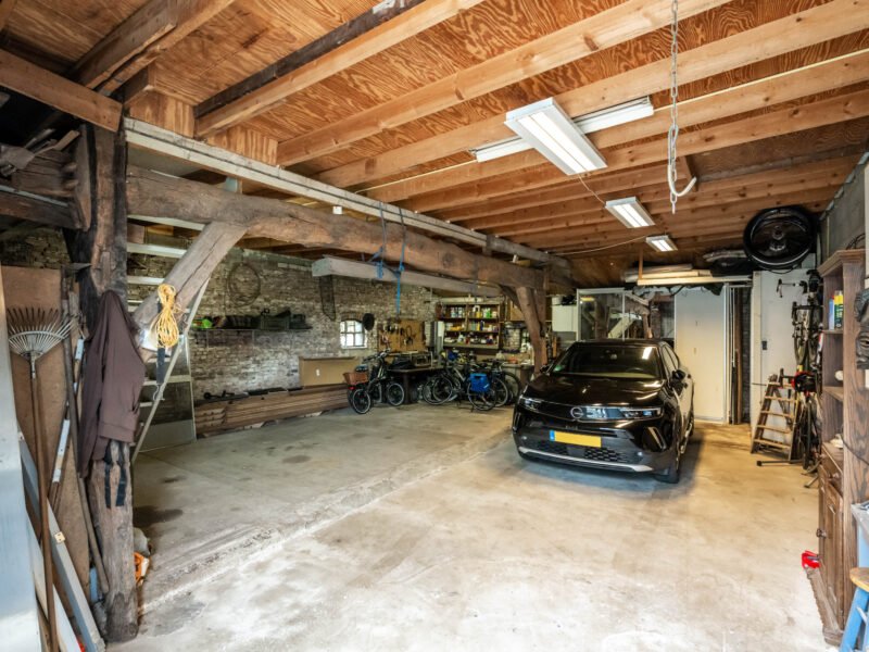 Aan de voorzijde van de boerderij bevindt zich een grote (inpandige) GARAGE, Niet alleen handig voor het parkeren van uw auto, maar ook zeer geschikt als werkplaats, om te sleutelen aan een oldtimer, of als hobbyruimte. Heeft u behoefte aan extra woonruimte? Dan biedt deze garage ook de mogelijkheid om betrokken te worden bij het woongedeelte.