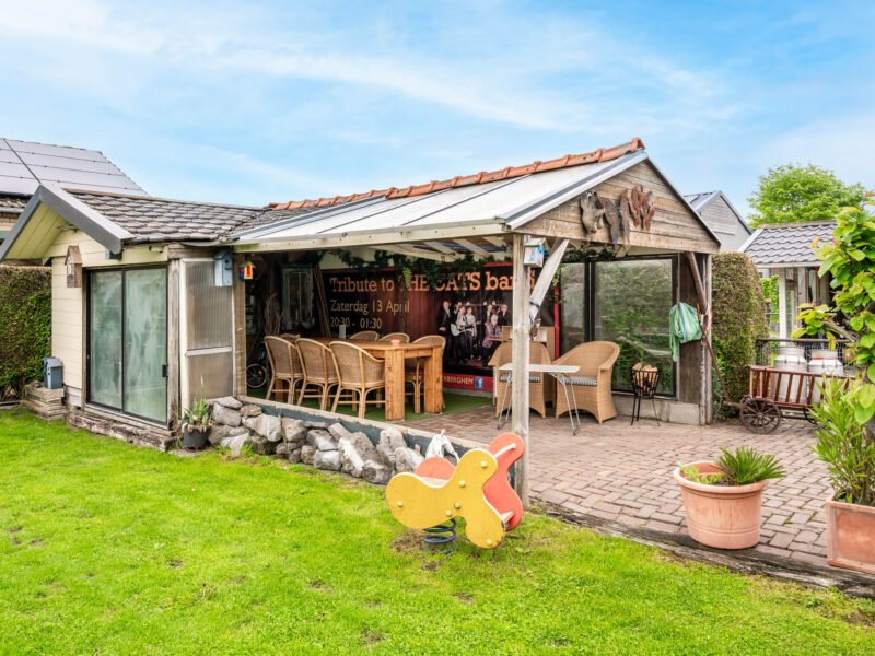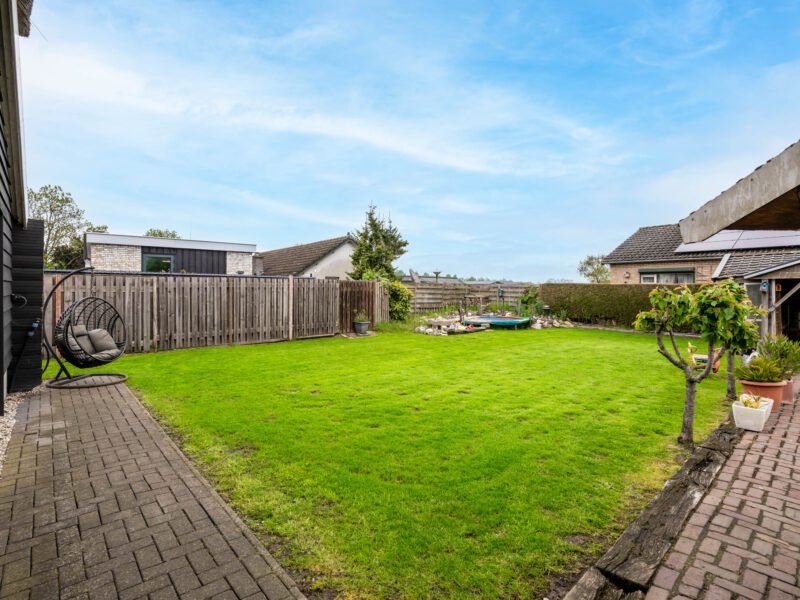 De achtertuin is volledig omheind en biedt rust en privacy. Dankzij twee OVERKAPPINGEN (één aan de achterzijde en één aan de zijkant) heeft u de keuze waar u uw tuinset neerzet of heerlijk uit de wind een boek leest met uitzicht op het groen.
