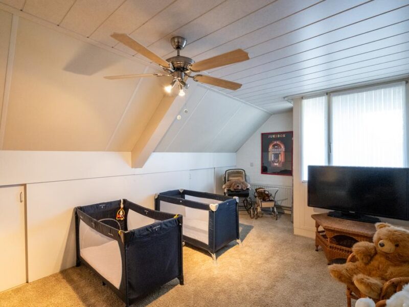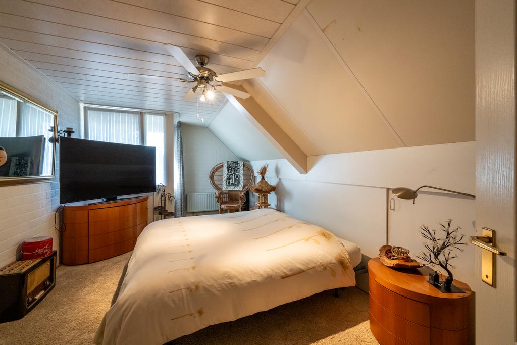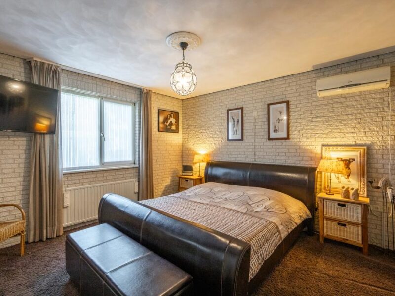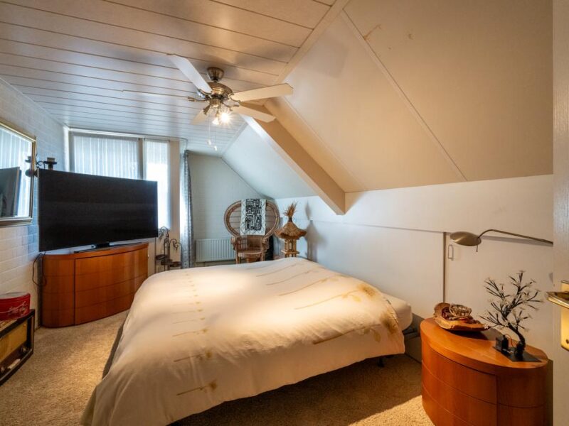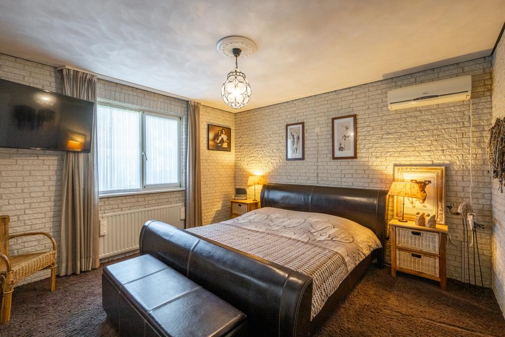 De slaapkamer is gelegen aan de achterzijde van de woning. Het is een royale ruimte met grote inbouwkasten en een AIRCO zorgt voor verkoeling op warme dagen.