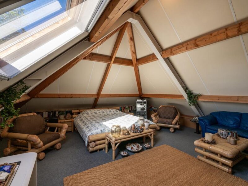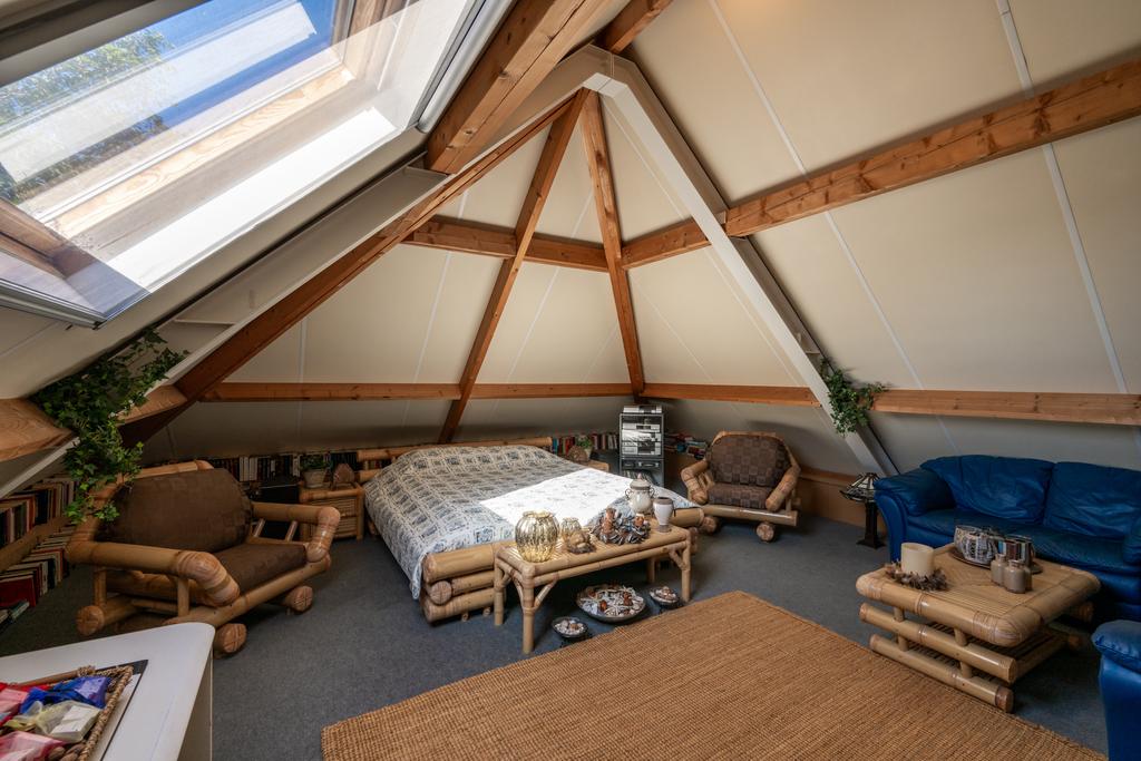 De MASTER bedroom bevindt zich aan de achterzijde van de woning. Het is een speels ingedeelde ruimte die open is tot in de nok en met de balken zichtbaar voor een optimale sfeerbeleving. Een groot DAKRAAM zorgt voor voldoende lichtinval. Het is een royale ruimte waar u naast een tweepersoonsbed bijvoorbeeld ook een heerlijke zithoek kunt plaatsen.