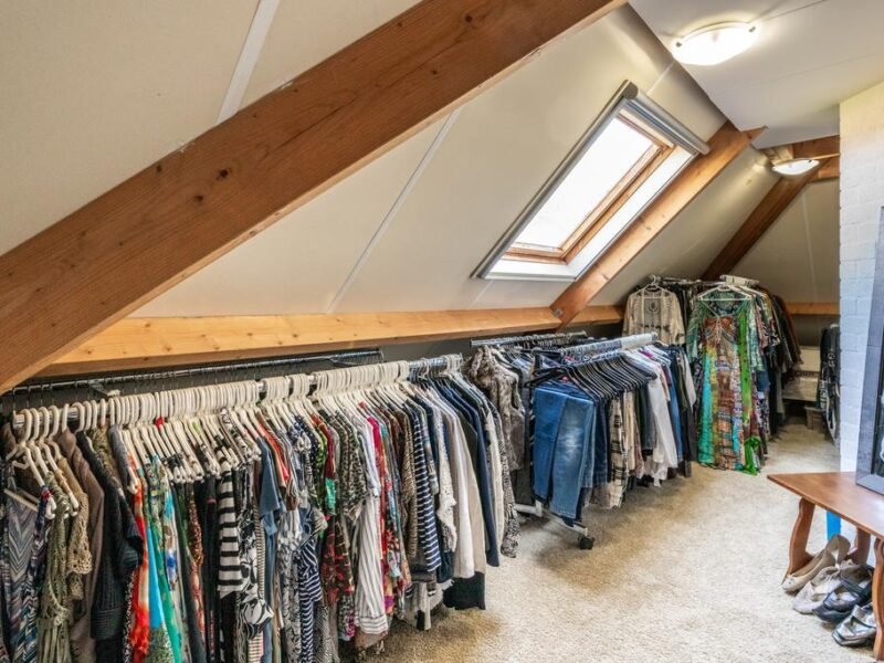 Verder is er beschikking over een ruimte die in gebruik is als WALK IN CLOSET. Een DAKRAAM zorgt hier voor natuurlijke lichtinval.