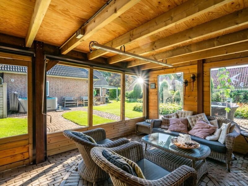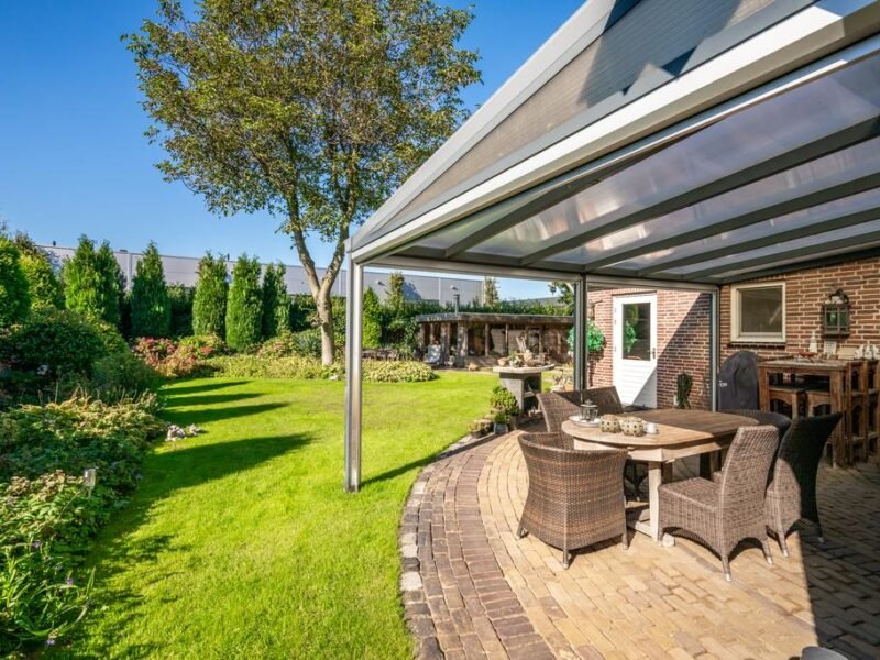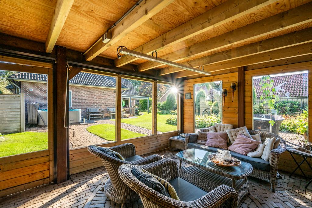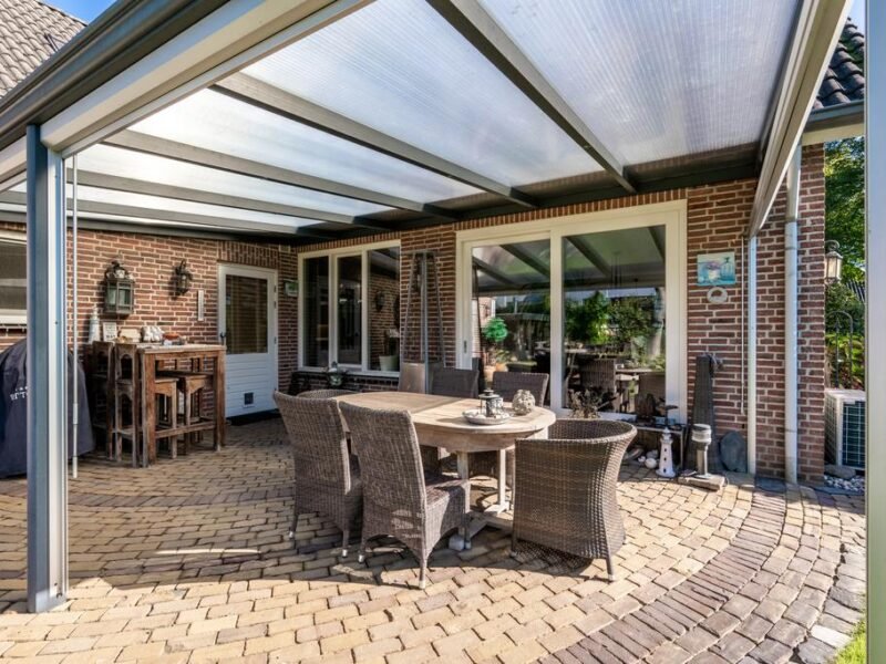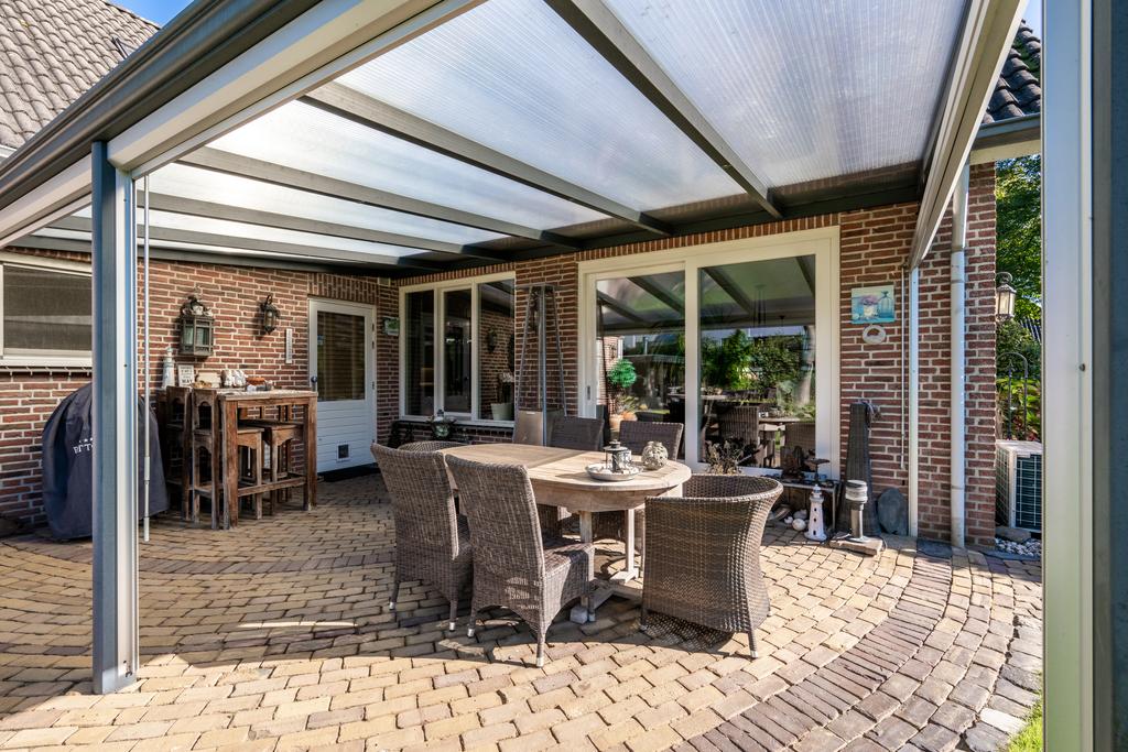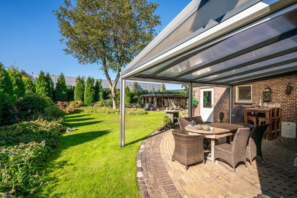 Een VERANDA is aansluitend aan de achtergevel geplaatst en tevens vanuit het eetgedeelte in de living te betreden. Het is een echte verlenging van uw woongedeelte, een heerlijke plek om ook bij minder weer te kunnen genieten van het buiten zijn.