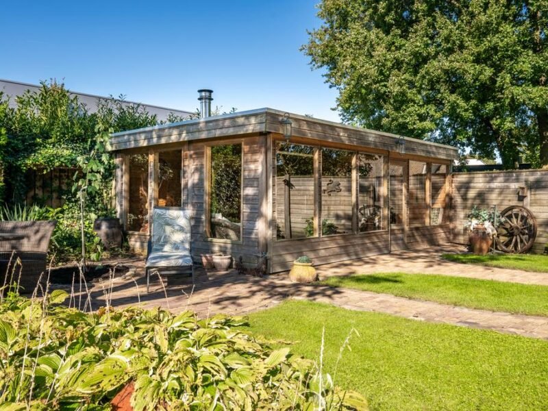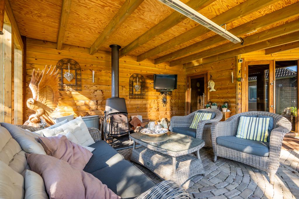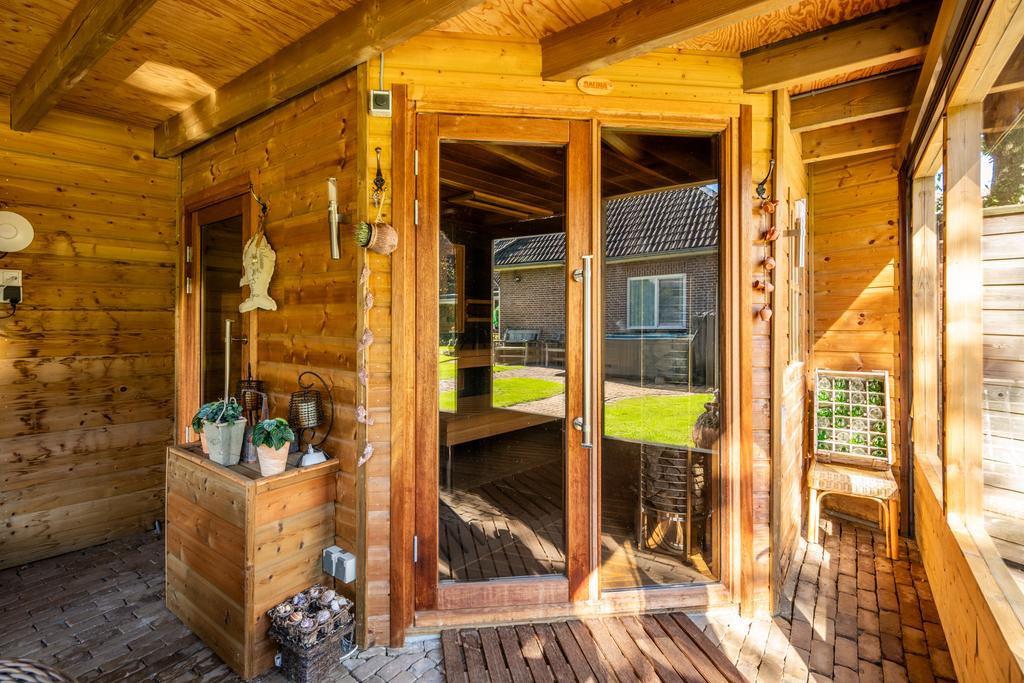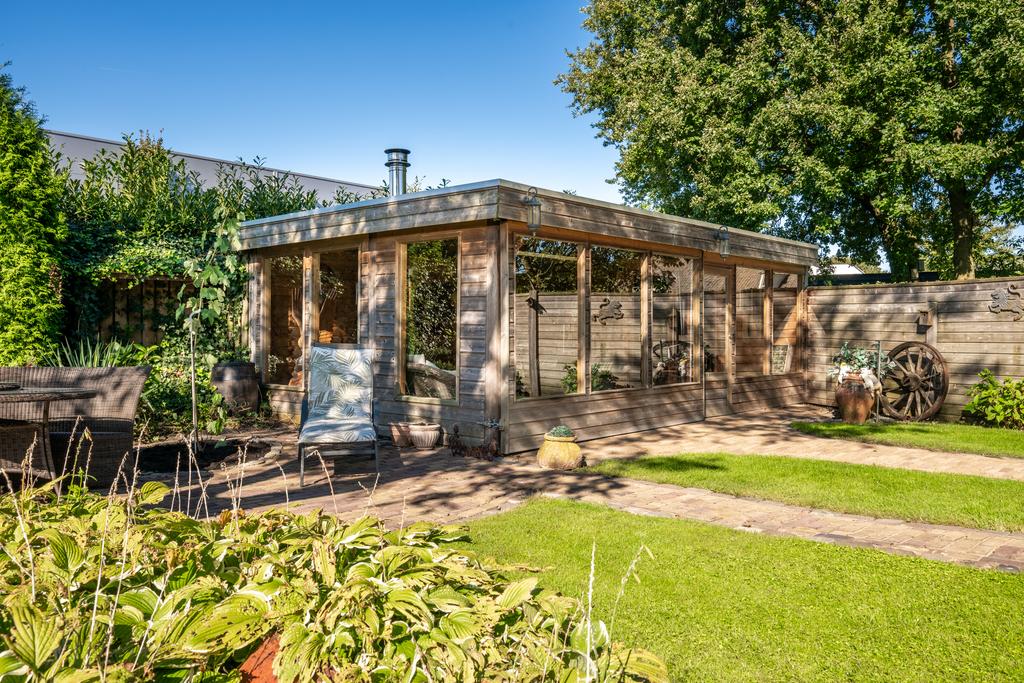 Aan de achterzijde is beschikking over een VRIJSTAAND bijgebouw. Een plek waar u heerlijk tot rust kunt komen in de sauna (met douche) en bij een knetterend vuurtje tot in de late uurtjes kunt borrelen met uw familie en vrienden.