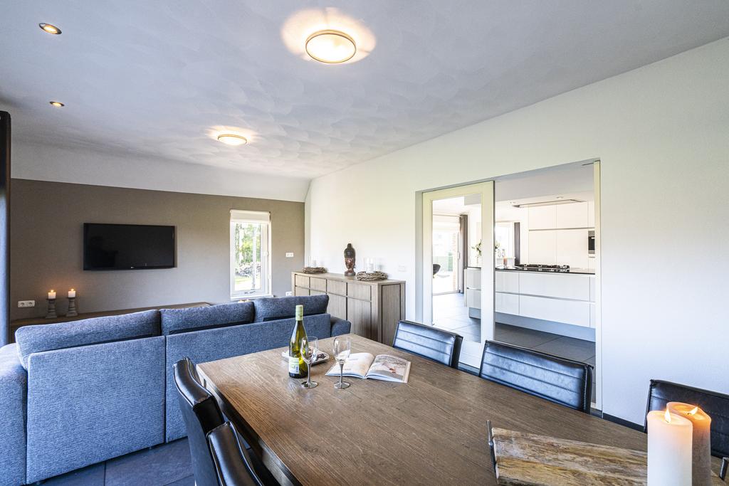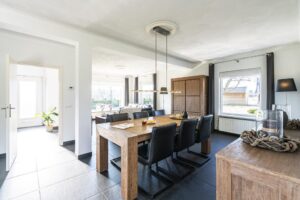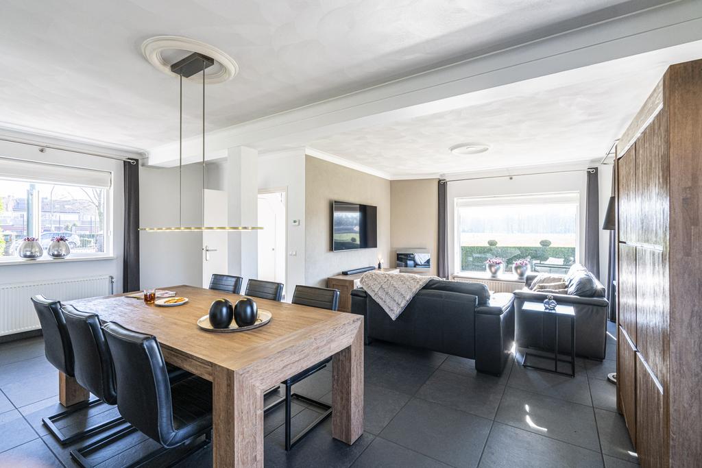De living heeft een OPEN karakter waar wonen en eten sfeervol gecombineerd worden. Middels grote raampartijen rondom geniet u optimale DAGLICHTtoetreding. Vanaf de bank kijkt u vrij weg over de naastgelegen WEILANDEN.