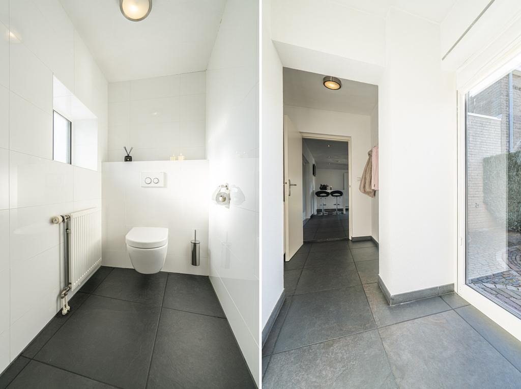 Vanuit de keuken is de moderne toiletruimte te bereiken.