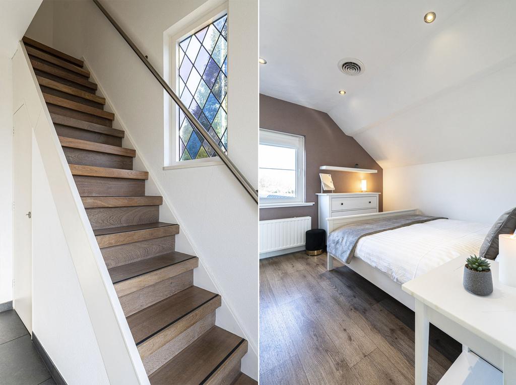 De slaapkamers zijn speels van indeling en MODERN afgewerkt met spachtelputz wanden en strakke plafonds met inbouwspots en de ALUMINIUM kozijnen zijn uitgerust met ISOLERENDE beglazing.