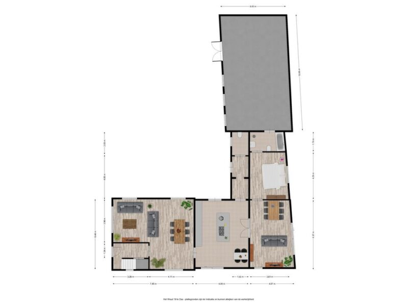 De WOONKEUKEN is te betreden vanuit de living en bevindt zich in de AANBOUW aan de achterzijde.