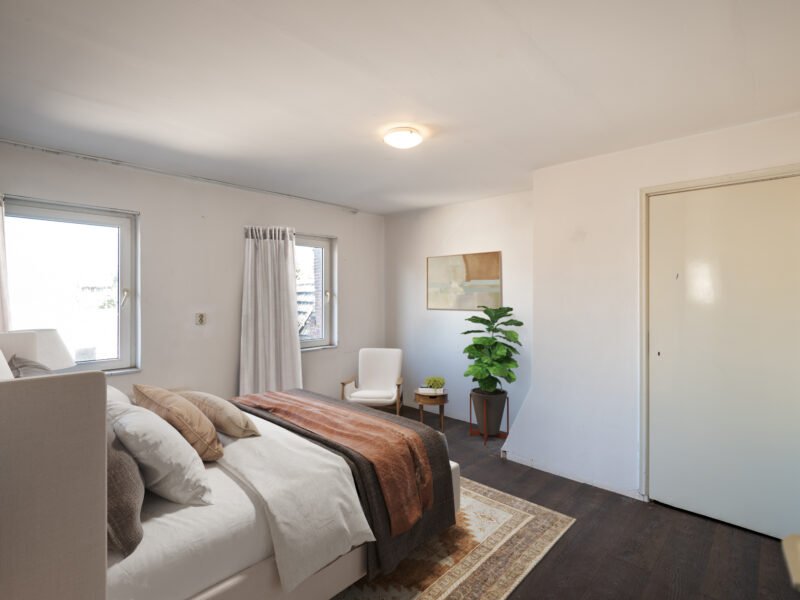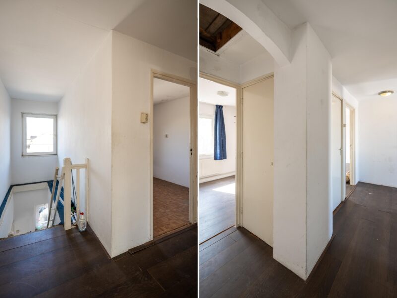 De woonlaag is verrassend RUIM opgezet en telt maar liefst VIJF aparte kamers. Eén kamer leent zich perfect als lichte, gezellige living, terwijl de overige kamers bijvoorbeeld ingericht kunnen worden als slaapkamers, werkkamer of hobbyruimte. Daarnaast vindt u op deze verdieping een keuken met opstelplaats CV ketel en witgoedaansluitingen en aangrenzend de badkamer met douche, toilet en wastafel.