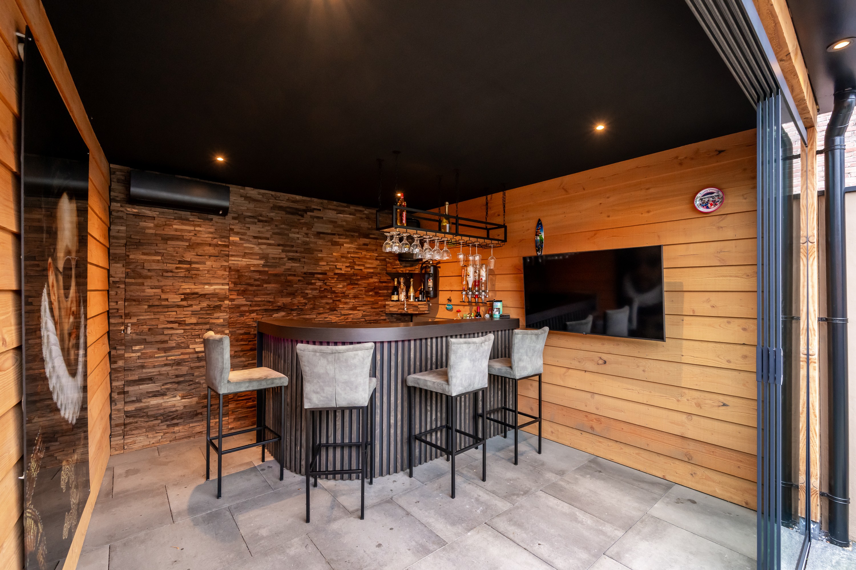 Achterin de tuin staat een moderne OVERKAPPING, een plek die zich uitstekend leent voor gezellige avonden met familie en vrienden. De overkapping is grotendeels GEÏSOLEERD en voorzien van glazen schuifwanden, waardoor u hier een groot deel van het jaar comfortabel kunt zitten.