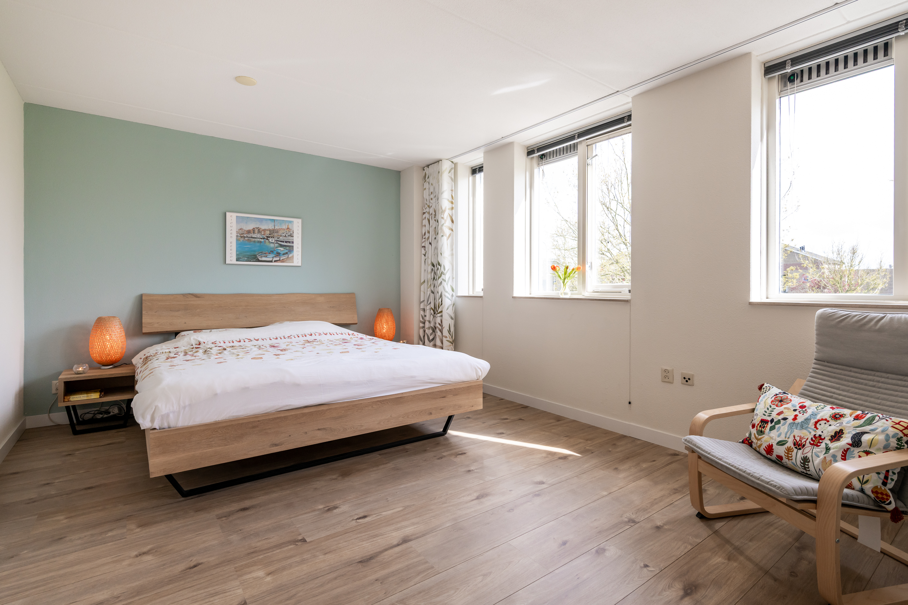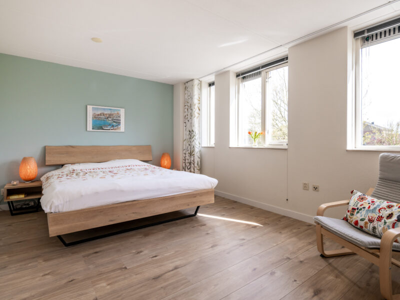 De MASTER bedroom ligt aan de voorzijde en beslaat de volledige breedte van de woning. Deze kamer voelt bijzonder ruim aan en wordt versterkt door de grote raampartijen, die zorgen voor een prettige en lichte sfeer.