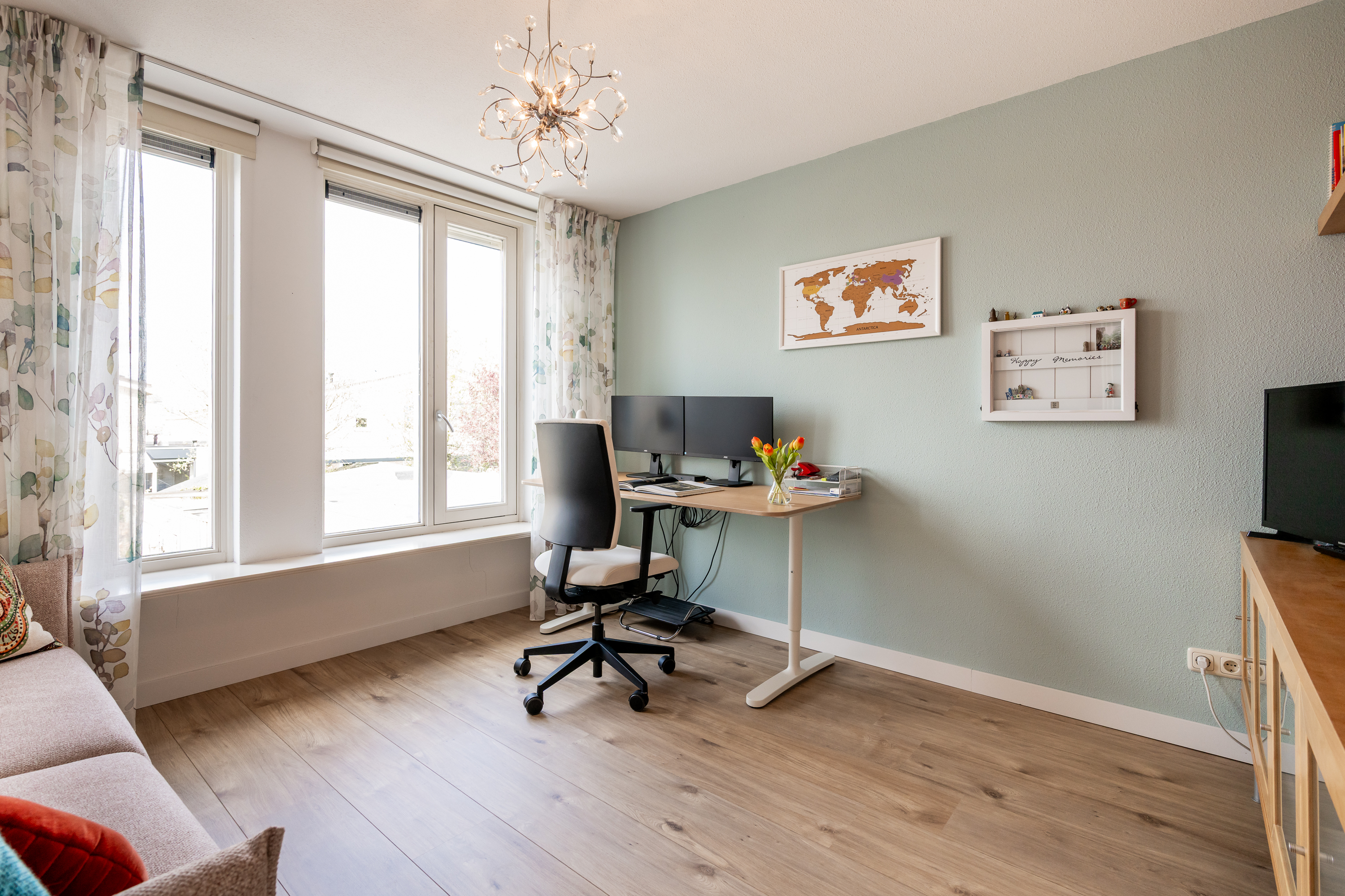 Via een vaste trap bereikt u de tweede verdieping. Hier bevindt zich de VIERDE slaapkamer met een speelse indeling onder de deels schuine kap. De raampartijen aan zowel de voor- als achterzijde zorgen voor natuurlijk lichtinval. Daarnaast is er praktische bergruimte aanwezig op de voorzolder en onder de knieschotten.