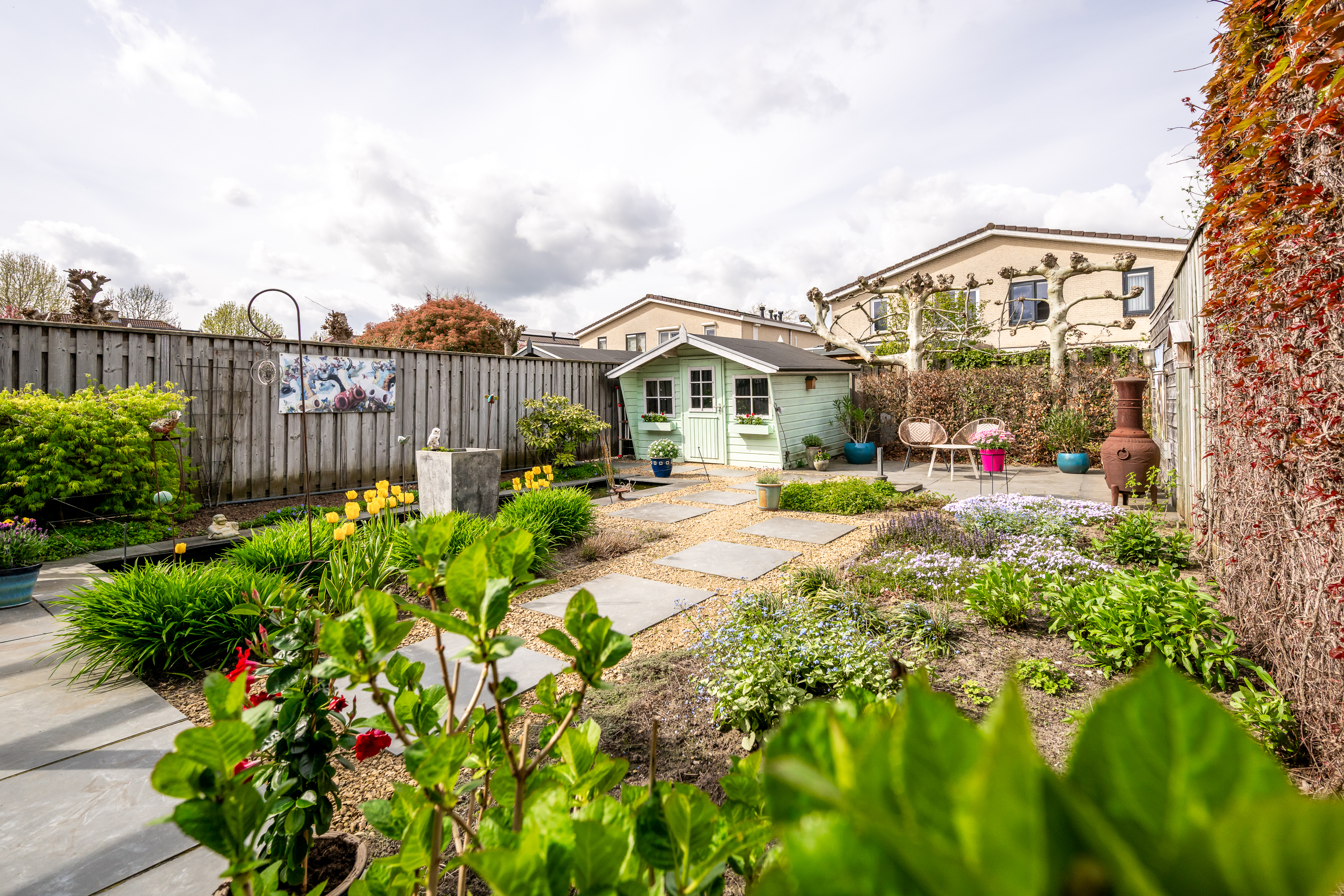 De achtertuin is met zorg en aandacht aangelegd en vormt een echte blikvanger van de woning.