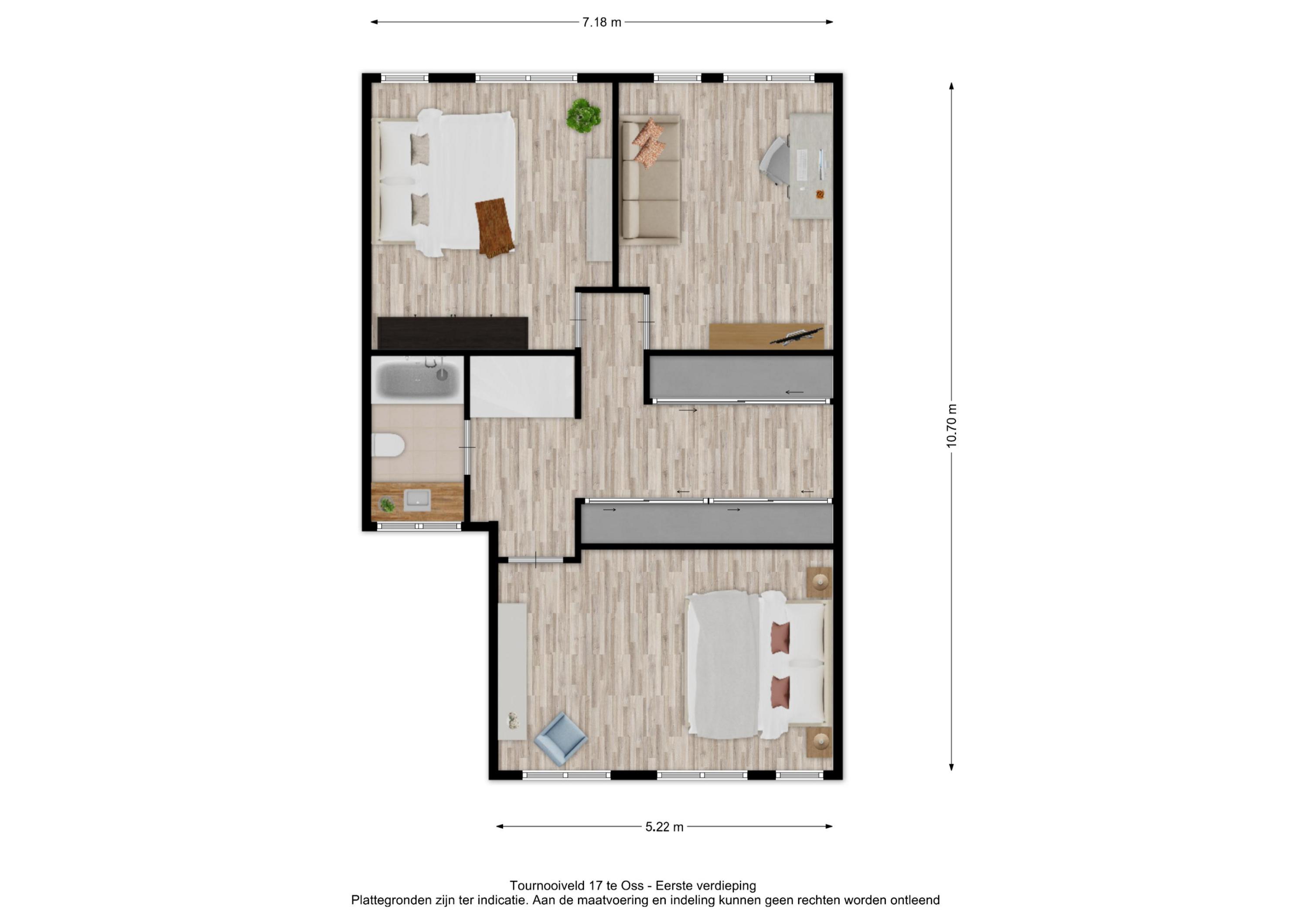 Deze brochure is met de grootste zorg samengesteld. Toch kunnen er in de tekst type- of drukfouten, onvolledigheden of onjuistheden voorkomen. Alle opgegeven maten en oppervlakten zijn indicatief en kunnen in de praktijk iets afwijken. Wij raden geïnteresseerden dan ook aan om zelf een zorgvuldige inspectie van de woning uit te voeren. De uiteindelijke beoordeling en verantwoordelijkheid ligt bij de koper.