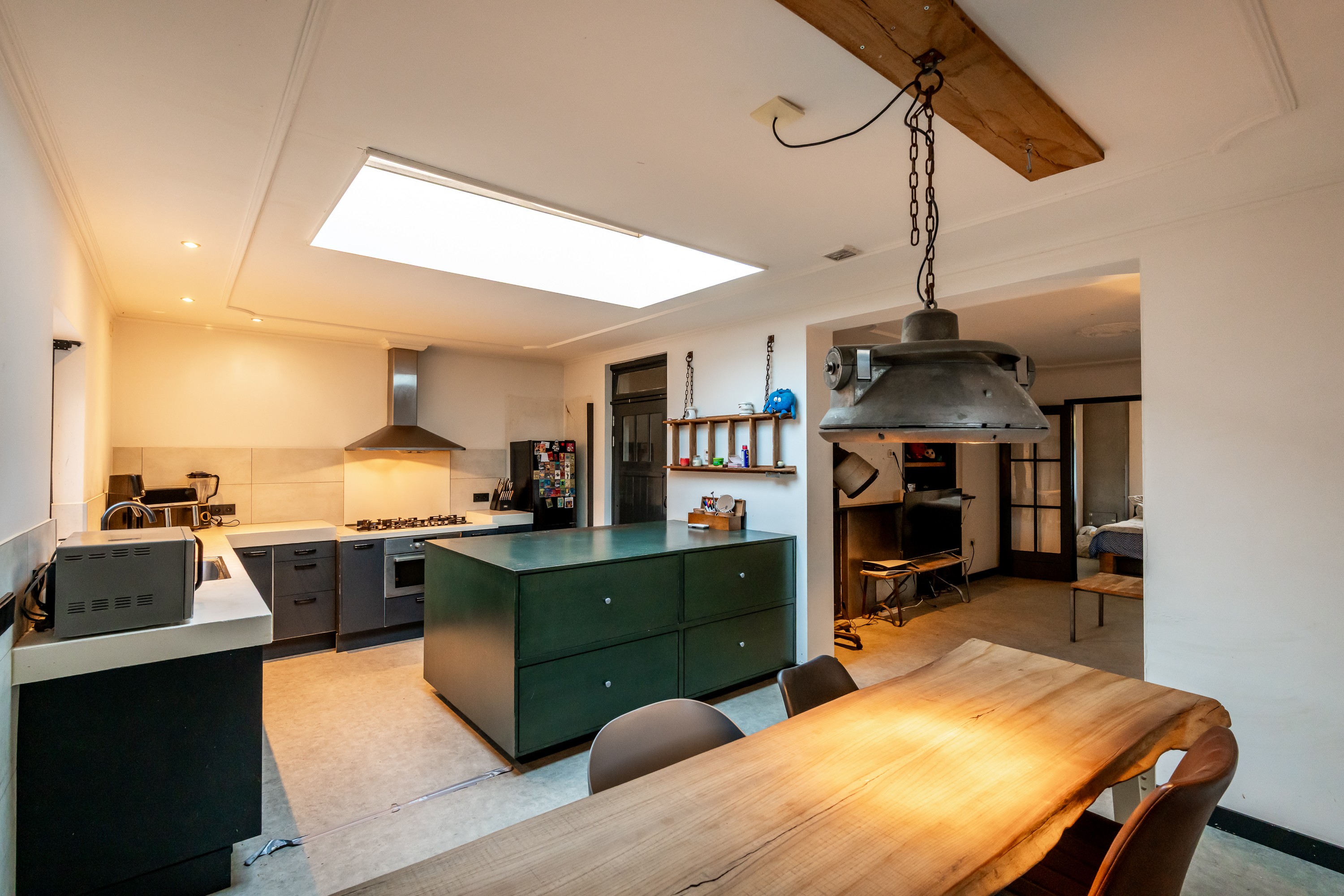 Aan de achterzijde van het oorspronkelijke woonhuis bevindt zich de WOONKEUKEN. Dit is een royale ruimte waar koken en samenkomen op een praktische manier zijn ingericht.