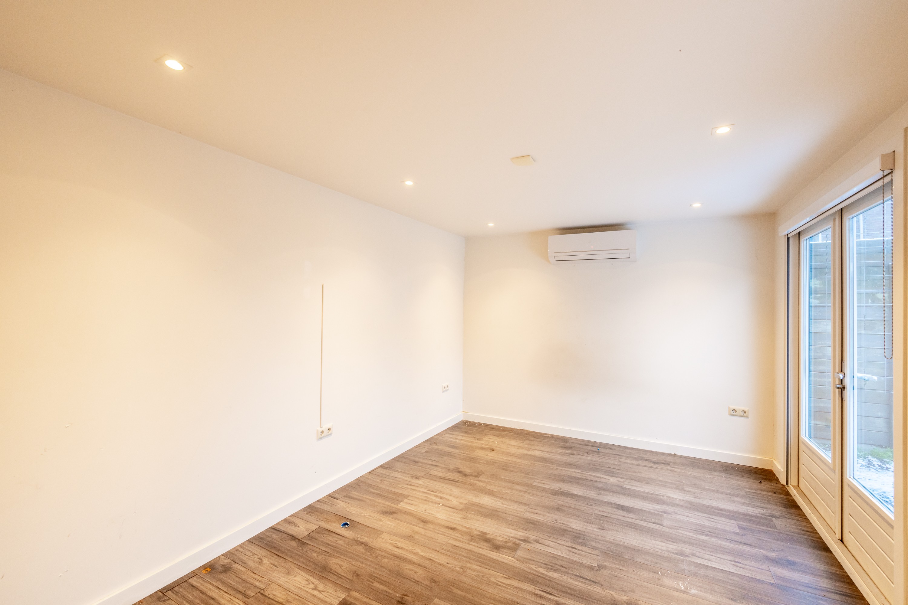 Aan de voorzijde bevindt zich een extra, afsluitbare ruimte die momenteel in gebruik is als slaapvertrek. Deze kamer is goed te benutten als SLAAPKAMER, maar kan ook dienen als speelkamer, zitkamer of hobbyruimte. Hierdoor is de begane grond op verschillende manieren in te delen en geschikt voor uiteenlopende woonwensen, waaronder GELIJKVLOERS wonen.
