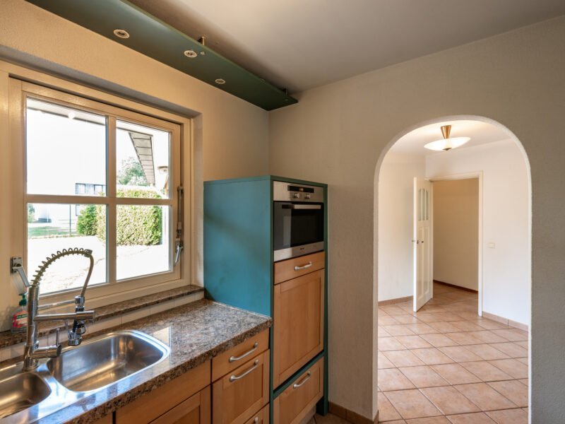 De keuken is vanuit de living te betreden.