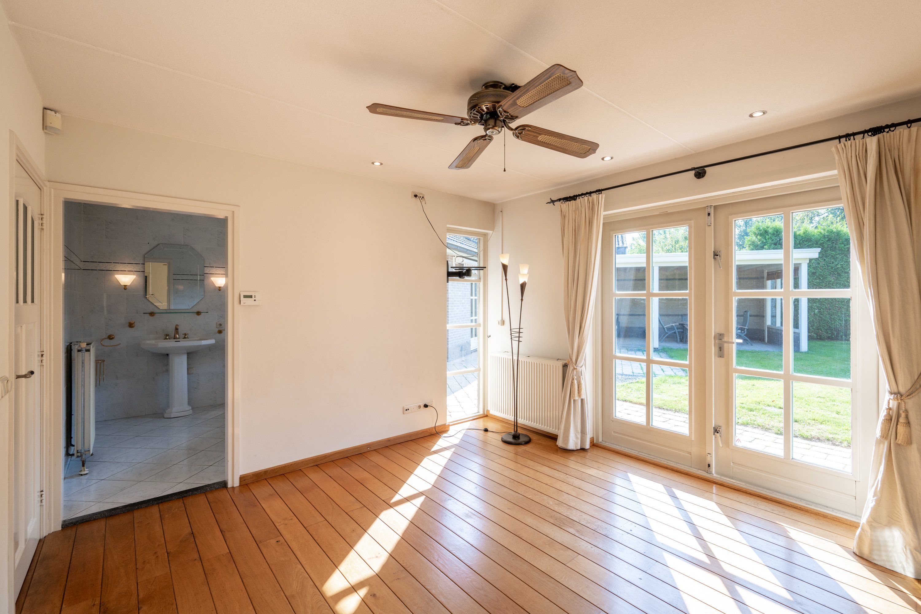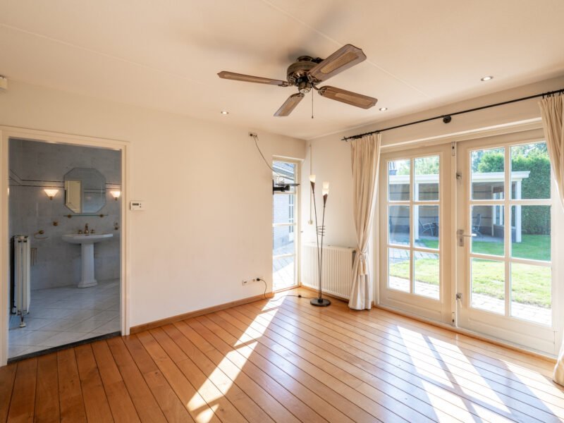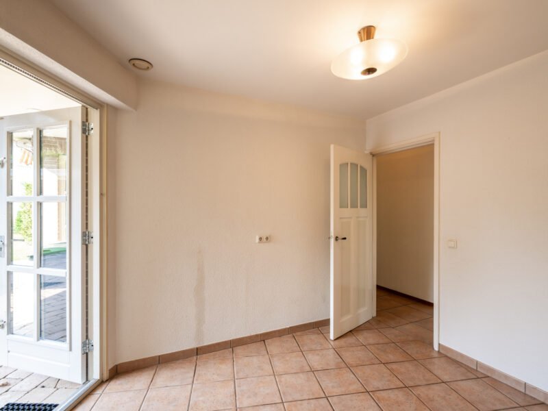 Middels een aanbouw aan de living is er ruimte ontstaan voor een extra speel- of werkkamer. Ook hier treft u openslaande tuindeuren naar de tuin.