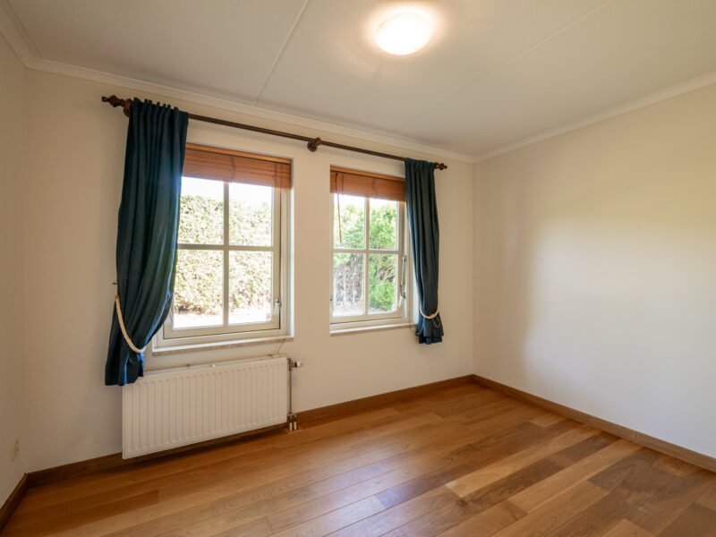 De derde slaapkamer treft u tevens aan de voorzijde van de woning. Een dubbele raampartij biedt optimale lichtinval en zicht naar buiten toe.